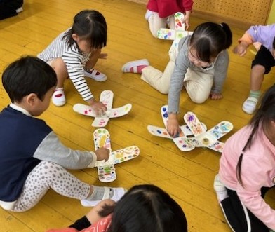 幼児クラスは、絵をかいて色を塗ってシールをはって、コマづくり。
